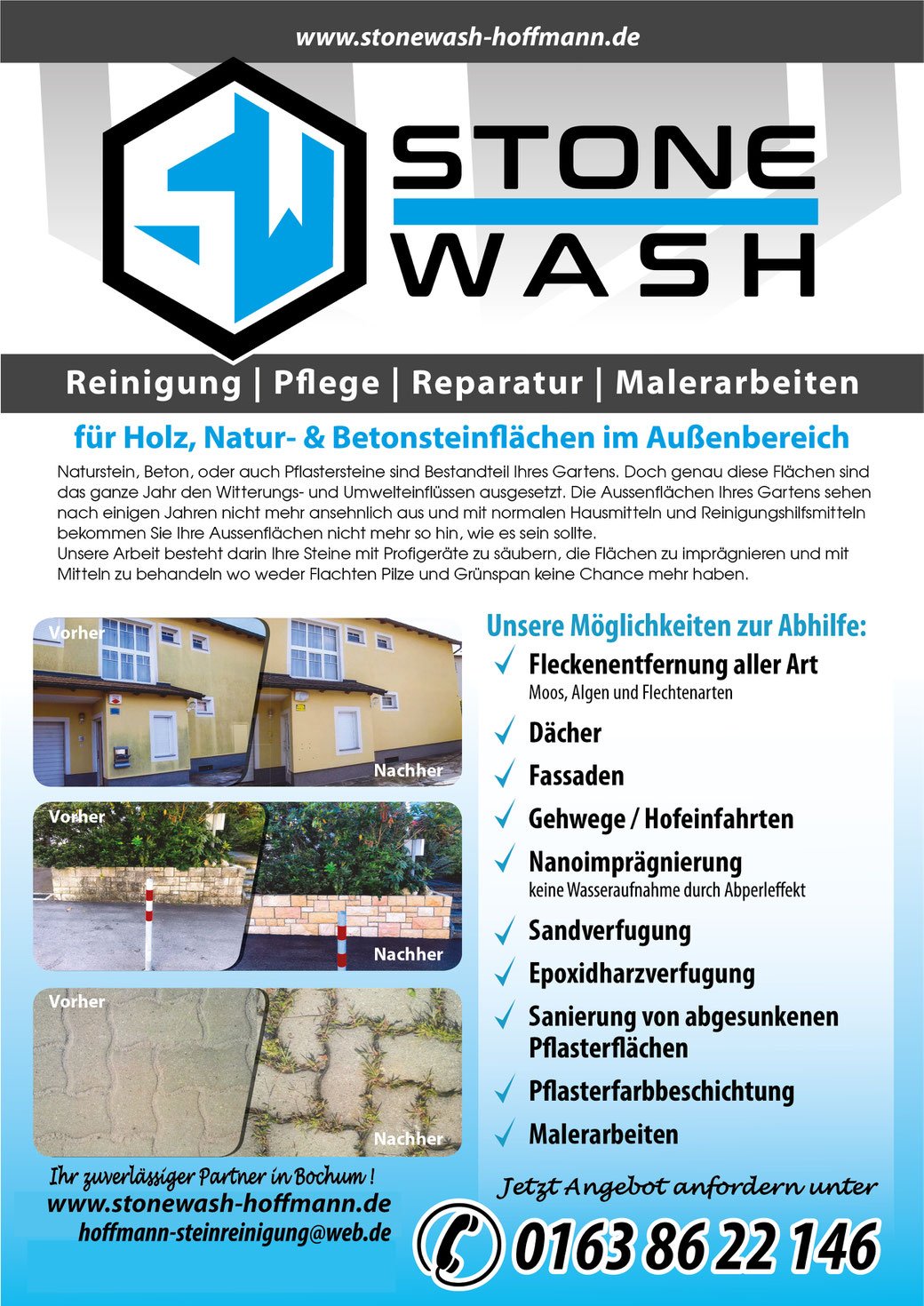 Wir reinigen schonend, umweltfreundlich mit Wasser und 250 bar aktiv Druck.